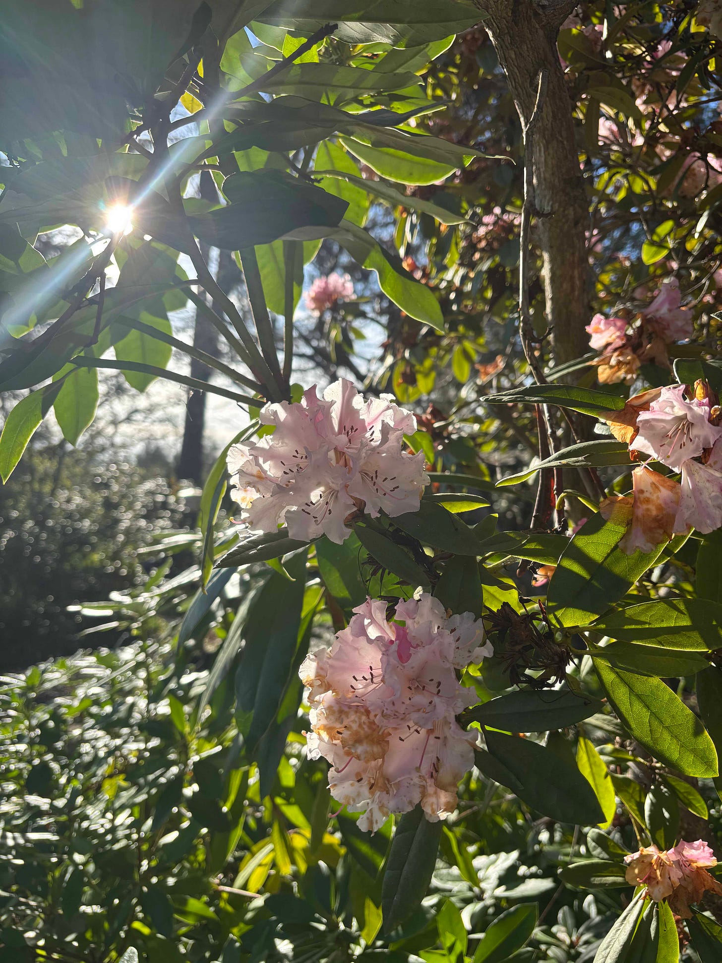 I sit amongst an orchestra of birds With the sun matching the angle of my gaze. The magnificence of Nature; Ferns, moss, dewed leaves, gargantuan trees, are revealed. The birds echo the grand announcement of the Suns unveiling of God’s majesty. I have no desire to think. I prefer a silent mind, or the brushstrokes of poetry. Like Nature, and the lush green around me, I require sunlight in order to function properly. So I awoke to gaze at the rising Sun. I sneeze. A person on a walk, on the other side of the tall hedges, whom I cannot see, says, "Gazundheit!" Grand rising generosity. What a cinema. What an endless ecosystem of inspiration. No wonder social media makes you want to die. To trade this for “the feed” is asinine. We are the ones being fed upon in the digital gulag— where all have consented to be. But here? As Beinsa Douno says, We must begin to think of God as our source of Life. Out here, dear friend, I am awe struck, enchanted, nourished and renewed as the Sun pours life into my cells, refreshes my eyes, and the frequencies of bird song tune my antenna. Maybe this is why we’ve never seen a wild thing feel sorry for itself. Out here, where we all belong, I want for nothing. I am perfectly at ease.