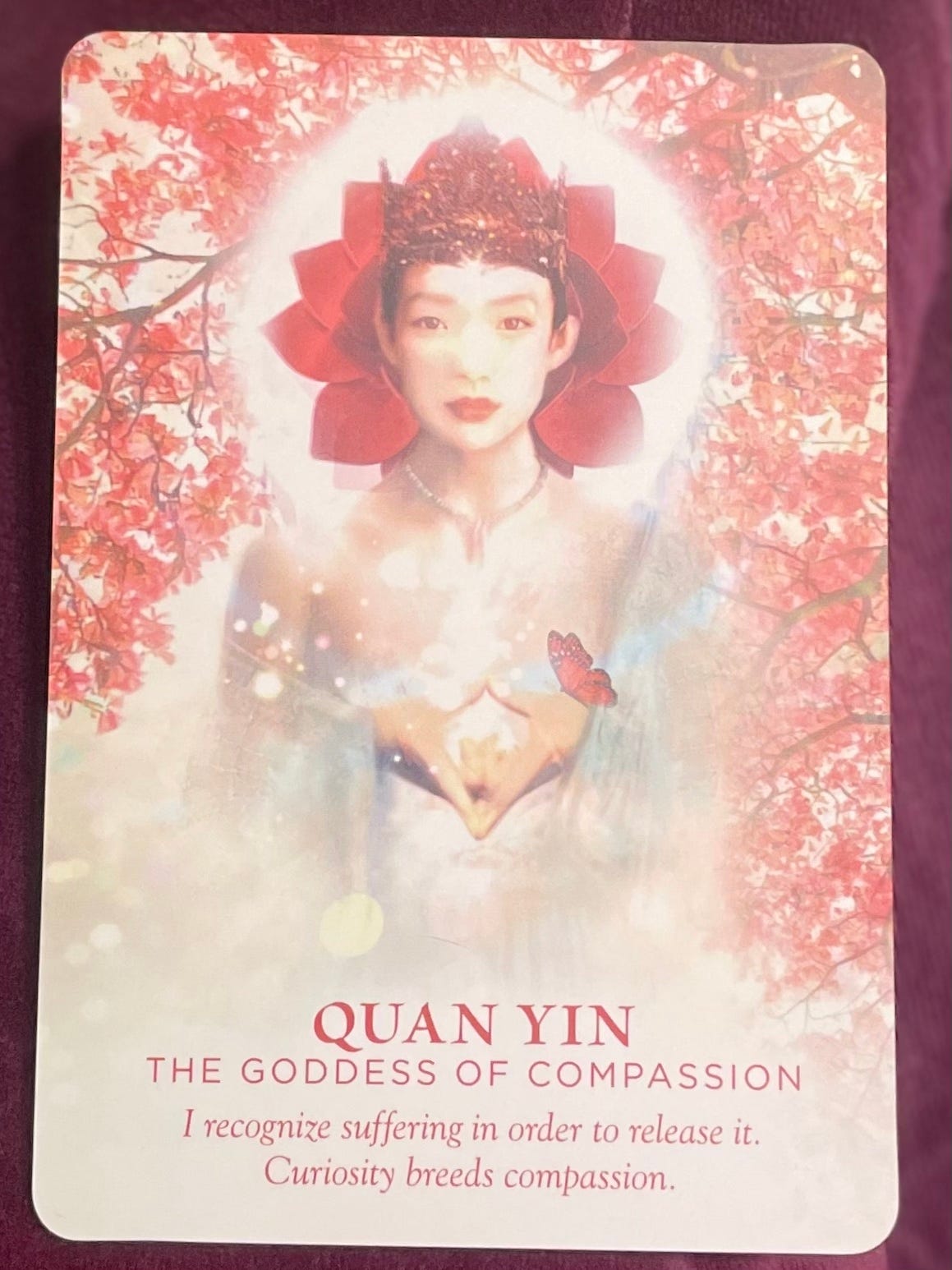 I drew her card before I began writing this. It was all about compassion for self and others, for curiosity being the bridge to compassion, to recognize suffering in all forms and allow it to be heard, with steadfast witness, that it may be released.